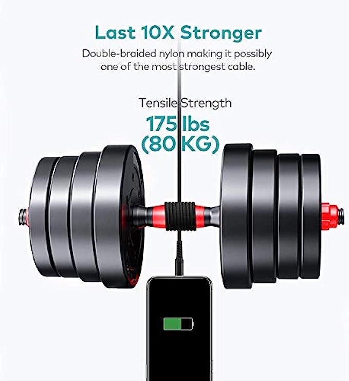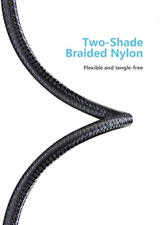 • Nylon Braided: Flexible charging cable has high-quality double Nylon braided jacket and core material. Compact aluminum alloy shell adds more protection to both and usb-A connectors, allows 40000 plus bending and repeated unplugging.