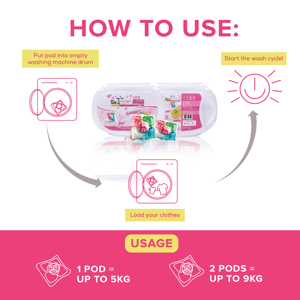 [AgiLife] 100 pods - 5in1 Plant-Based Laundry Capsule With Scent Booster/ Cherry Blossom Scent