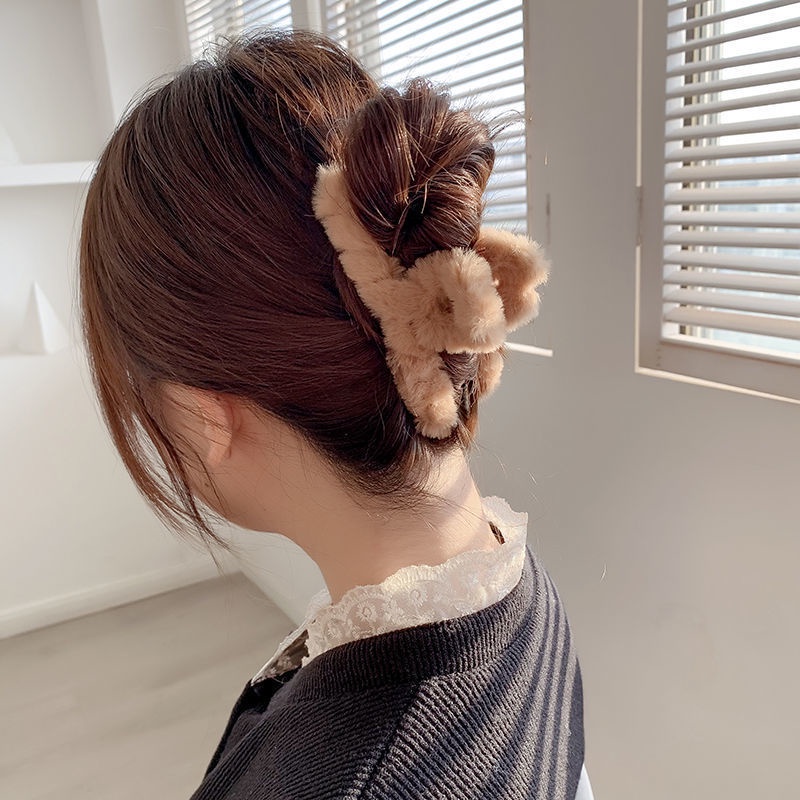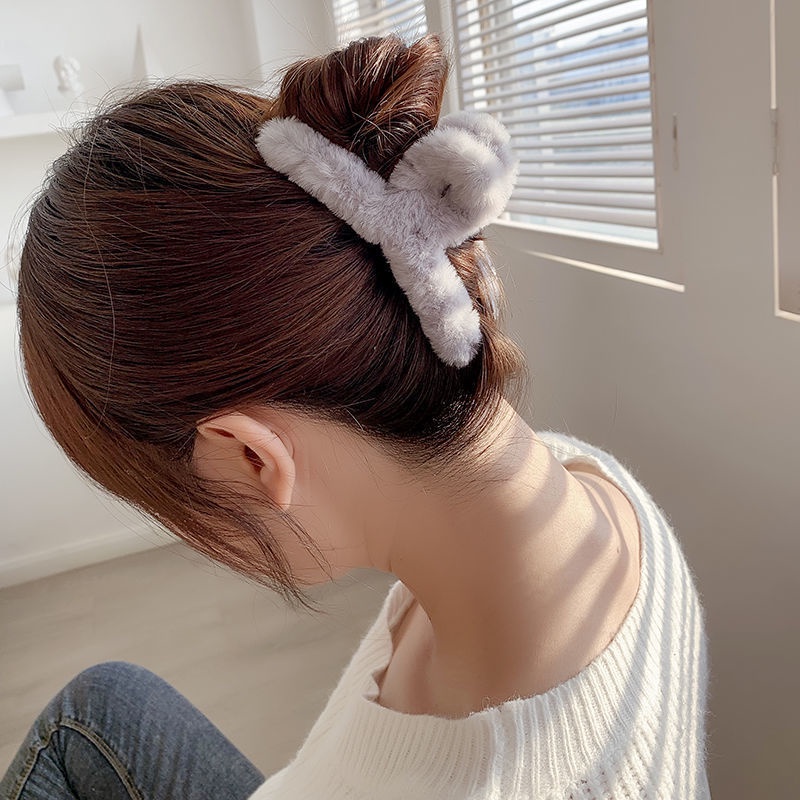 Korean Autumn Winter Plush Hair Clip Simple Solid Color Back Head Plate Hair Clip Female Sweet Girl Shark Clip Hair Accessories