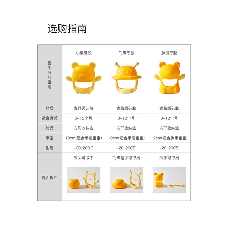 爱咔威\/IKV小熊护手牙胶婴儿 硅胶防吃手环神器宝宝咬胶玩具可水煮加收纳盒
