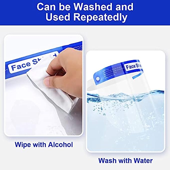 • 【Environment Friendly & Premium Quality】 We always insist on using premium materials to produce higher-quality products. This face shield is made of recyclable waterproof PET (polyethylene terephthalate) to effectively isolate saliva and fully protect the face from sprays, splashes, drops, dust, oil, smoke and etc.