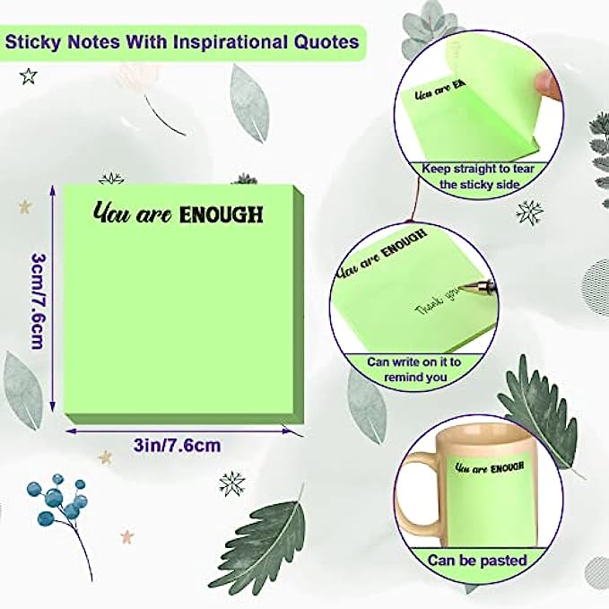 Inspirational design: the motivational sticky notepads are designed with inspiring quotes on the colorful memo notepads, including the sentences of hey warrior keep going, do your things, wake up with a purpose, good things are coming, you are enough, enjoy every moment, you are awesome, make yourself a priority, laugh more worry less, keep your head up, don't stop believing, little things make big, which can encourage you to keep active attitudes to your life