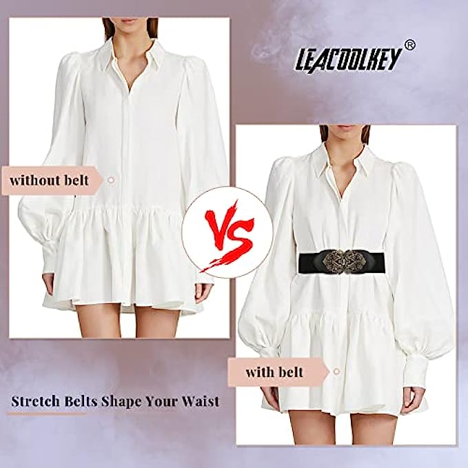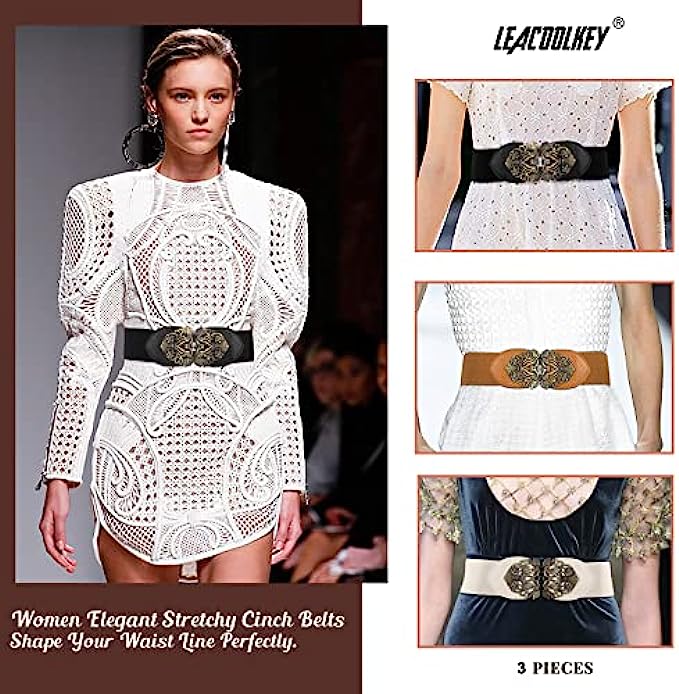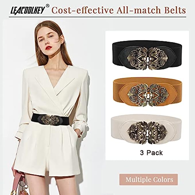 • ? 3 Pack Waist Belt: The waist belts in the set are available in 3 colors totally:Black/Brown/Beige. These vintage waist belts can be perfect fit for dresses, coats, sweaters,T-shirts and more cloths in any occasion. Help you show off your waist and stand out from the crowd.
