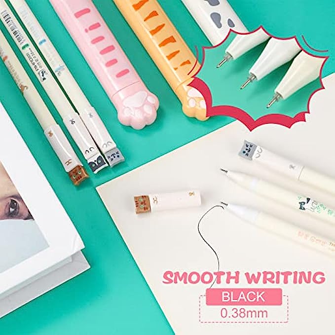 • Cute cat pens: stainless 0.38 mm black ink pens are easy to replace the refills and come with cute cat pattern printed, attractive and interesting, suitable for writing, drawing, marking, painting and so on, portable and you can use them any time you need