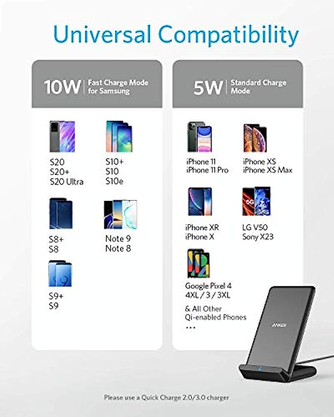 • What You Get: Anker 313 Wireless Charger (Stand) / PowerWave Stand, 3 ft Micro USB Cable, welcome guide, worry-free 18-month warranty, and friendly customer service.