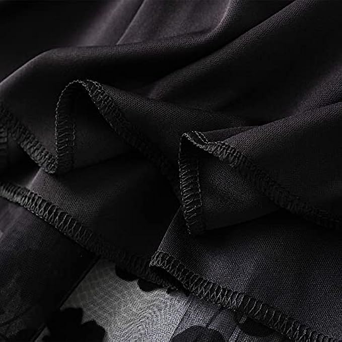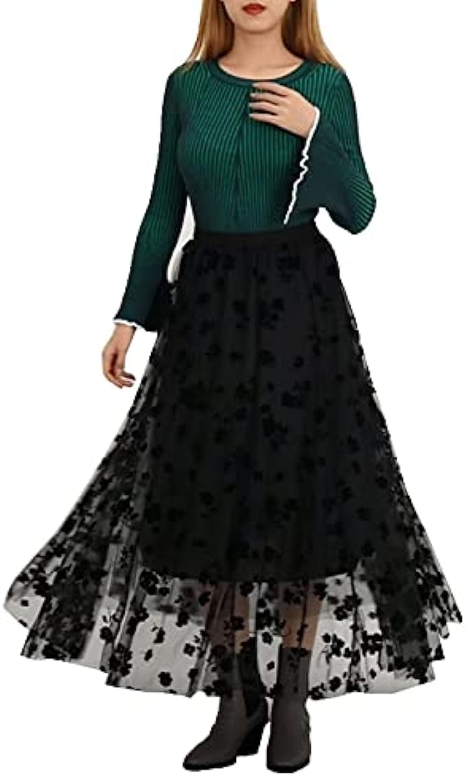 BABAMOON Women Chiffon Tulle Elastic Floral Print Mesh Overlay Layered A Line Midi Skirt