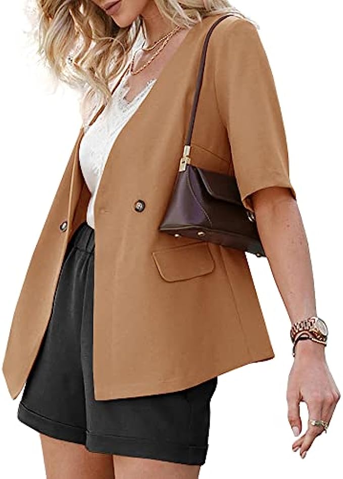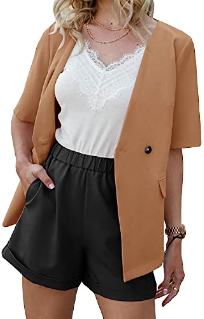 • Features: Button Closure Design Blazer,Casual Loose Fit,Short Sleeve.It Is Perfect for Summer, Spring and Fall.