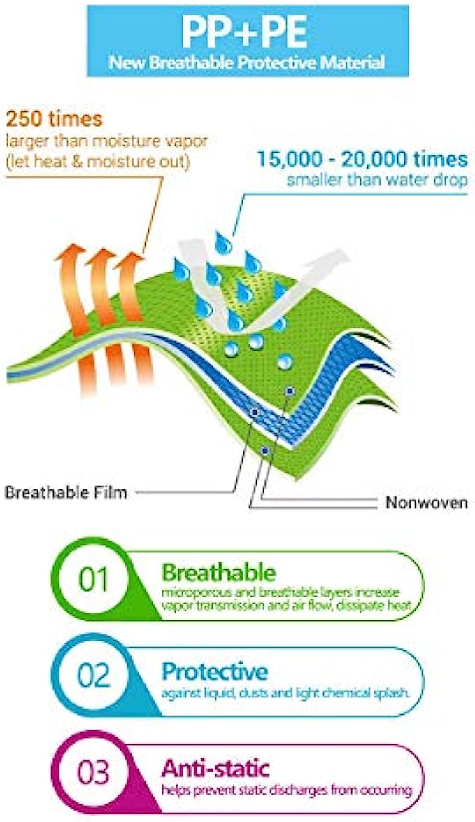 • Microporous and breathable layers increase vapor transmission and air flow, dissipate heat, offer a cool and comfortable wearing experience; Anti-static coating helps prevent static discharges from occurring.