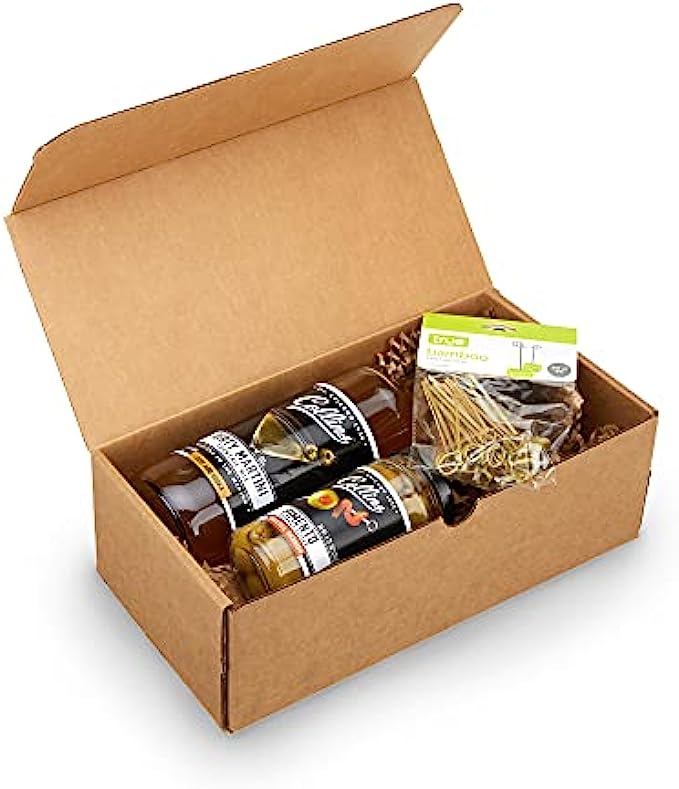 ALL-IN-ONE COCKTAIL KIT - Do you love the kick of a classic dirty martini? This cocktail kit has everything you need, including a 25.4 oz bottle of dirty martini olive brine, plus a 5 oz jar of gourmet pimento olives and a pack of bamboo cocktail picks.
