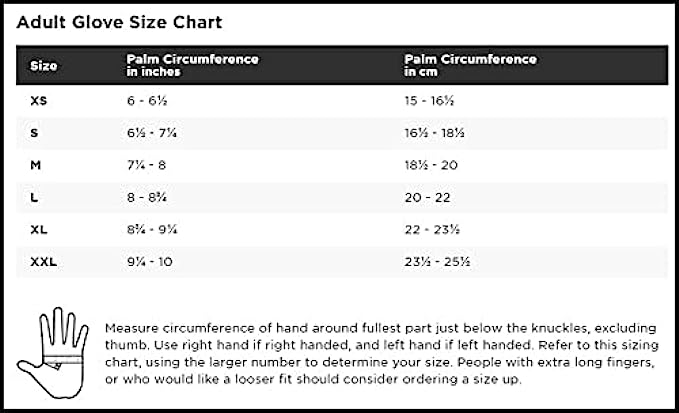 • FEATURES: Silicone print on palm and fingers for added grip and dexterity; Length of glove (from top of middle finger to cuff edge - size medium): 9 1/8 inches; Machine wash, tumble dry; Imported