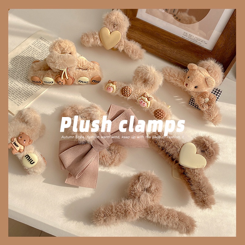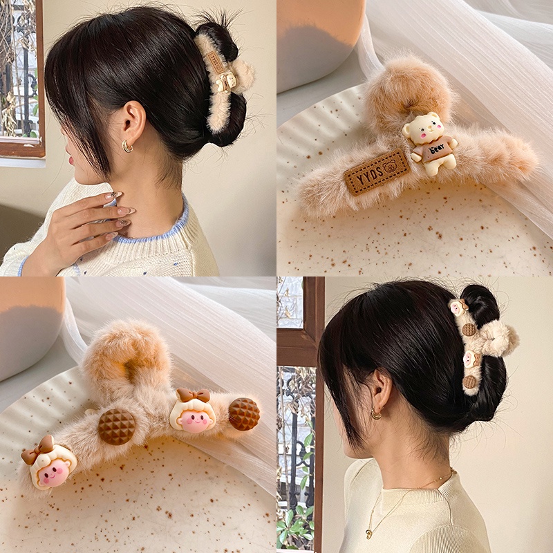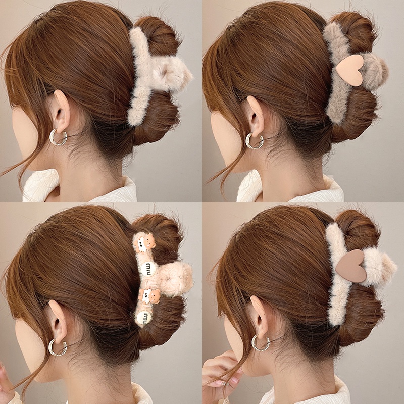 Korean Autumn Winter Plush Hair Clip Simple Solid Color Back Head Plate Hair Clip Female Sweet Girl Shark Clip Hair Accessories