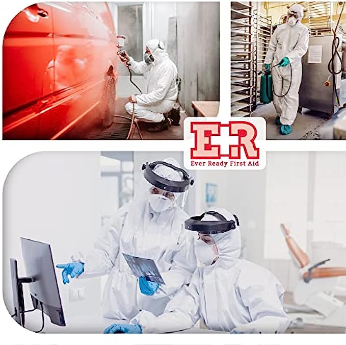 Ever Ready First Aid Disposable Microporous Coated Coverall Suit with Elastic Wrists, Elastic Ankles, Elastic Waist And Hood