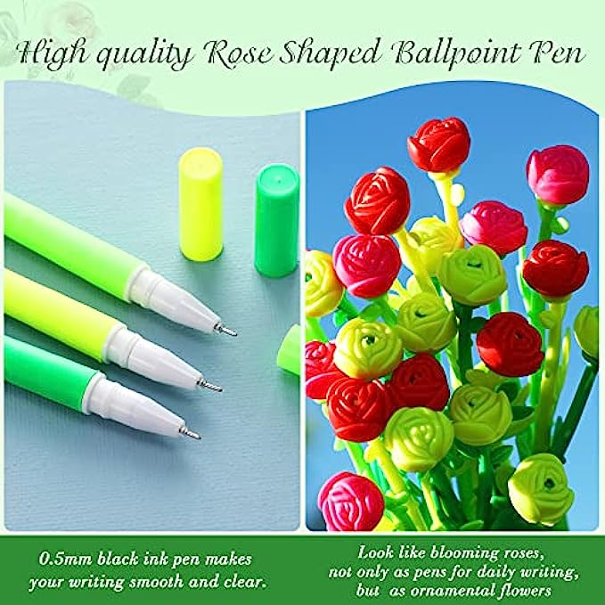 • Product information: you will get 60 rose shaped ballpoint pens with 3 different colors, 20 of which are dark green, 20 are light green and 20 are yellow; The quantity is enough to meet your daily use, replacement and decoration needs; These ballpoint pens are not only practical, but also beautiful and interesting