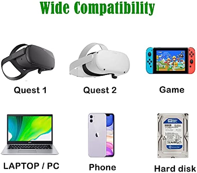 • User Friendly Design - The Type C port with an L shaped / 90-degree design prevents it from disconnecting from Oculus Quest 2 easily.