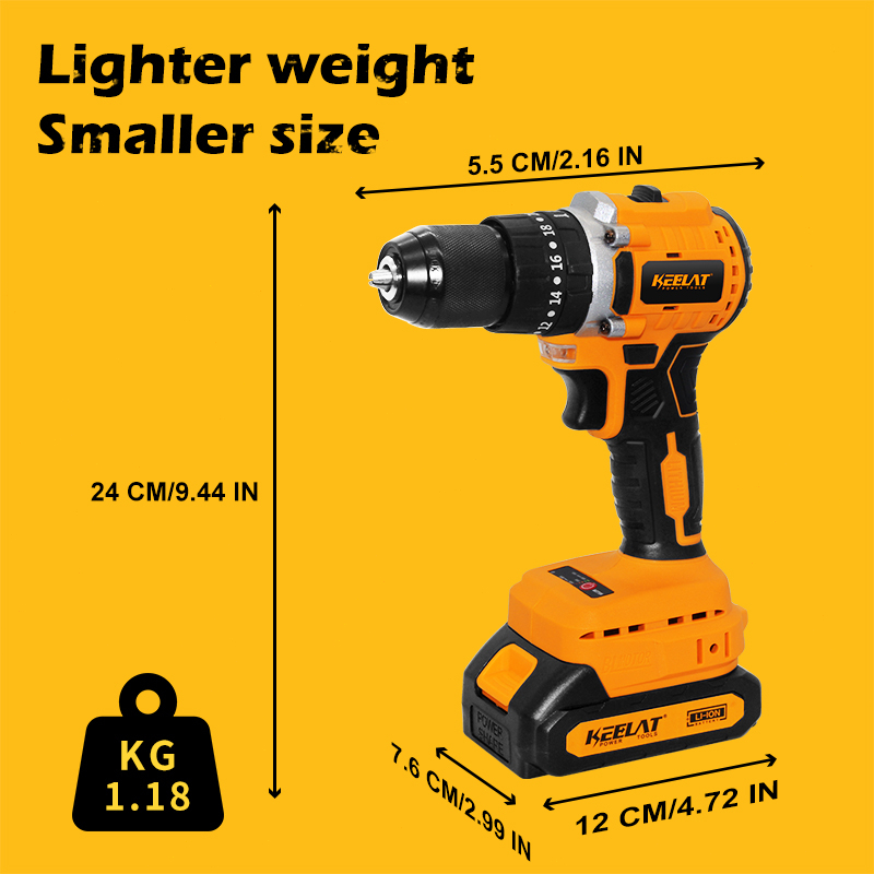 KEELAT KCD007 20V Brushless Drill impact Drill electric drill With Hammer Cordless Impact Drill Screwdriver Wall drill