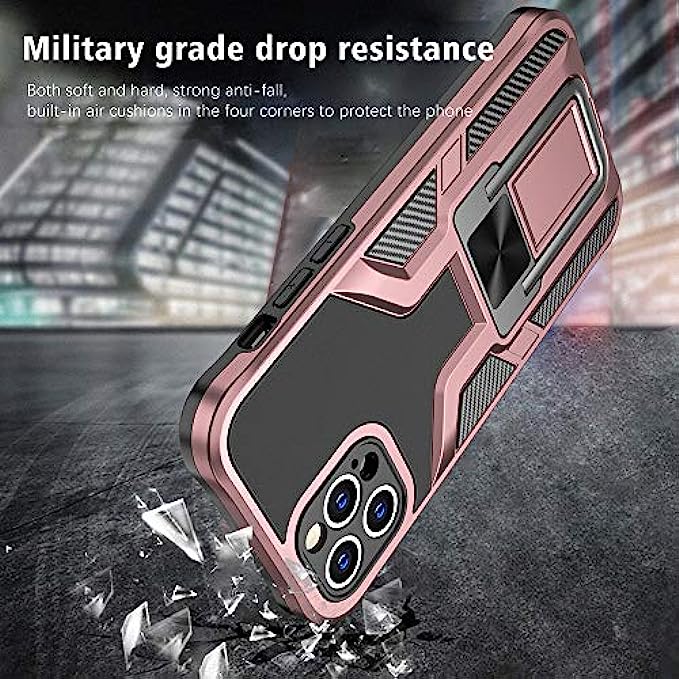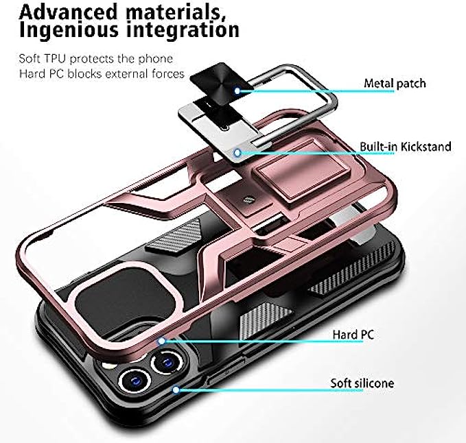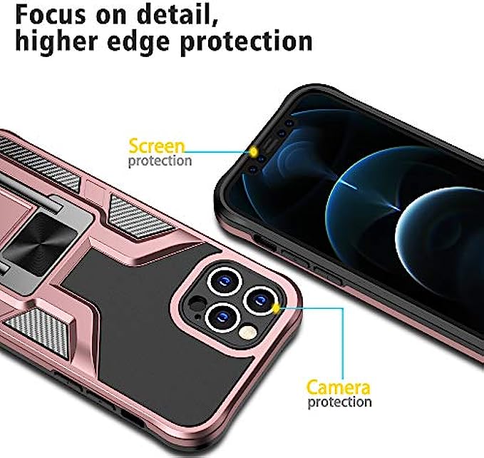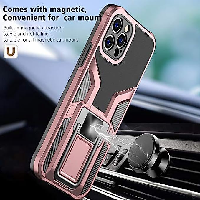 LMDAMZ Compatible iPhone 12 Pro Anti-Fall,Heavy Duty Military Grade Shockproof Kickstand Case Double Protection (TPU+PC) Solid and Durable Magnetic Car Phone Case, Suitable for 6.1 Inches (Rose Gold)
