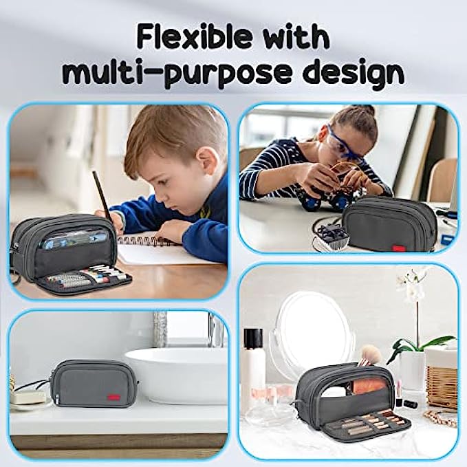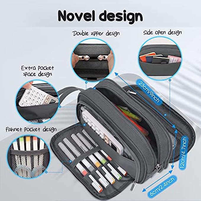 【Innovative storage space for your convenience】- Our pencil case is innovatively designed with 4 compartments. The zipper pocket can store notes, the other side pocket can store commonly used cards. Both the middle zipper area and the outer zipper adopt the double zipper design, which eliminates the direction restriction brought by the zipper. The scientific space design not only makes the storage clear, but also makes it convenient for you to take the items you need.