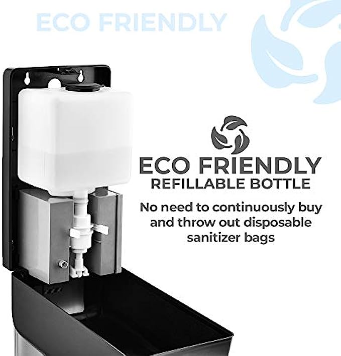 • ? MESS-FREE USE - Keep your floor surfaces clean and dry. This automatic sanitizer dispenser comes with a built-in drip catcher, preventing drops of liquid or gel from messing up your floors.