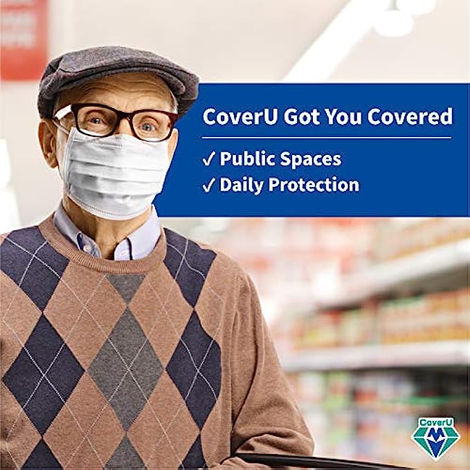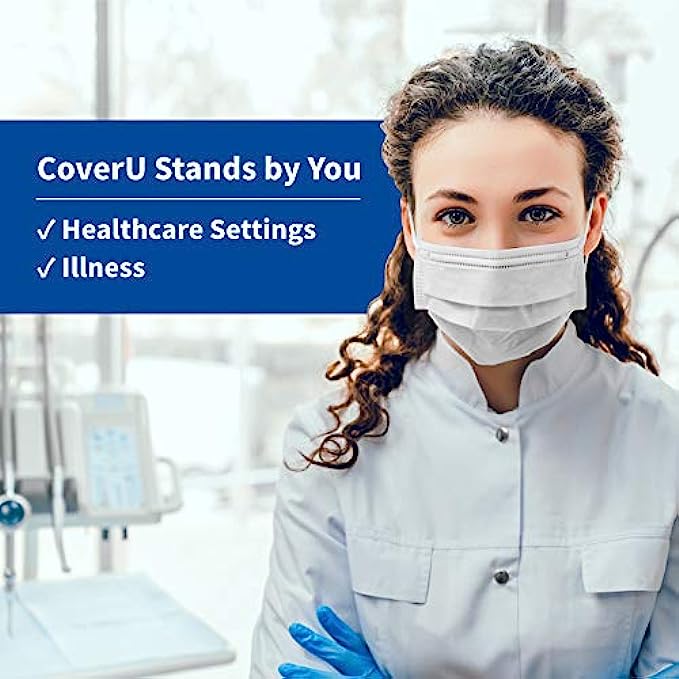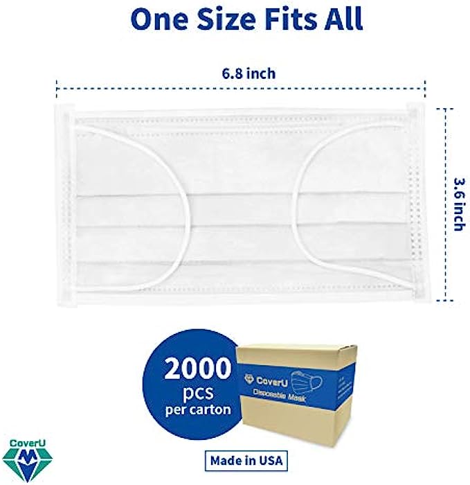 Medtecs Face Mask Disposable - Made in USA - Comfortable 3 Layer Breathable Mask, the Better Protection and Health Choice - CoverU Adult Mask - 50 PCS/Box x40 - White