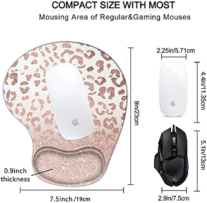 Mouse Pad with Wrist Support, Ergonomic Mousepad Non-Slip Base for Office Supplies Cute Desk Décor Accessories, Small Mouse Pads for Women Men Girls Rose Gold Leopard Cheetah