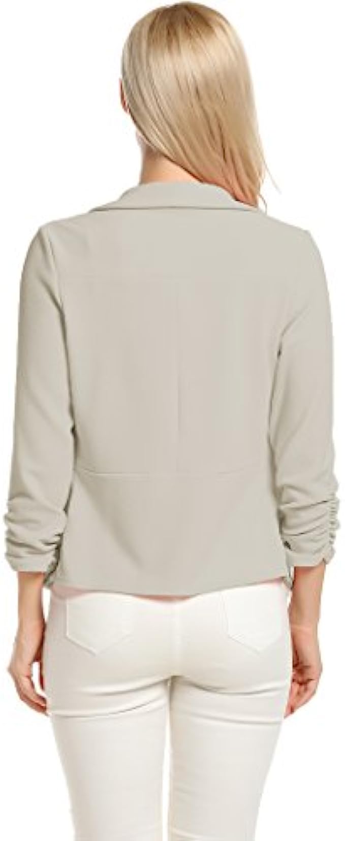 • 3/4 length Ruched sleeves Open Front Blazer