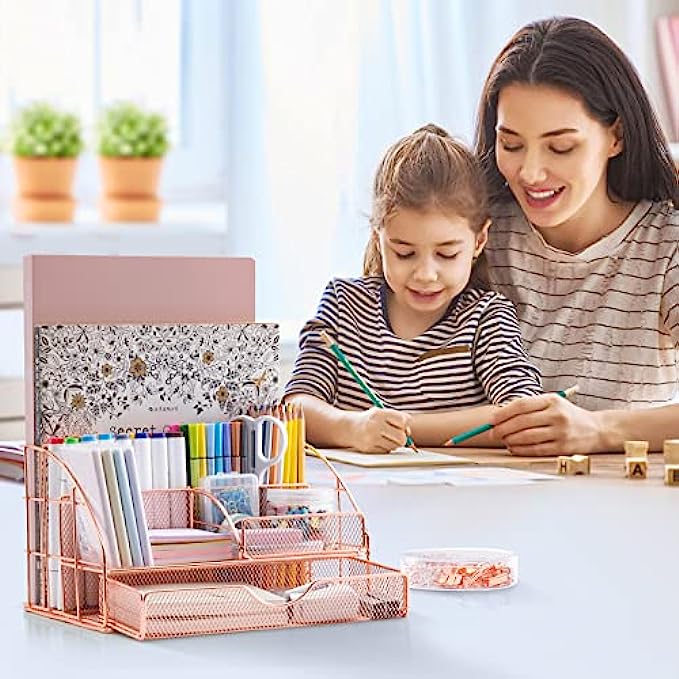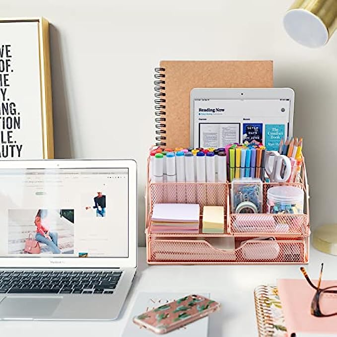 • UNIQUE & STYLISH: Mesh desktop organizer is made of high-quality metal with a durable rust-resistant plating finish. The combination of wire mesh and rose gold, with enhanced metal rims and stylish appearance is what makes your desk stand out! If you want to add some classy,feminine touches on your workspace, the Rose Gold product fits the bill nicely.