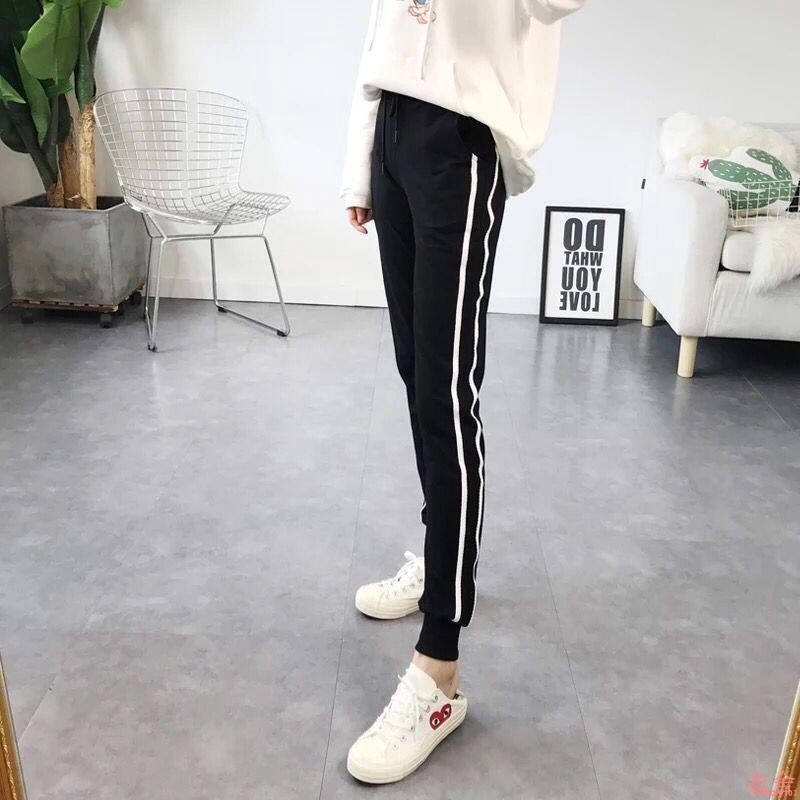 S-5XL 三線運動縮口褲運動褲 修身小腳褲 休閒百搭 窄腳 休閒長褲 大尺碼長褲 大碼運動褲 運動褲女