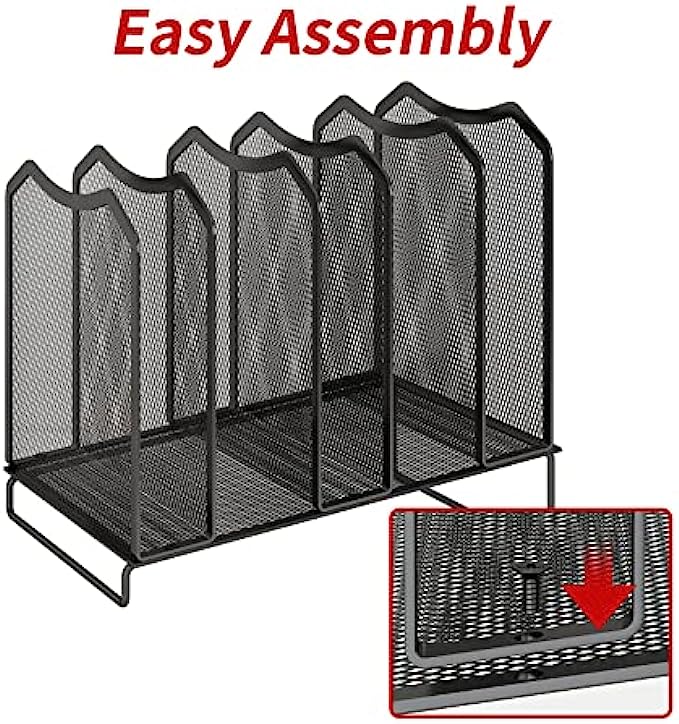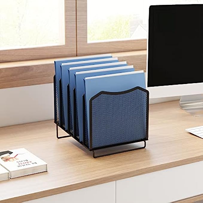 Simple Trending Mesh Desktop File Sorter Organizer, 5-Section Bookshelf for Desk Home Office, Black