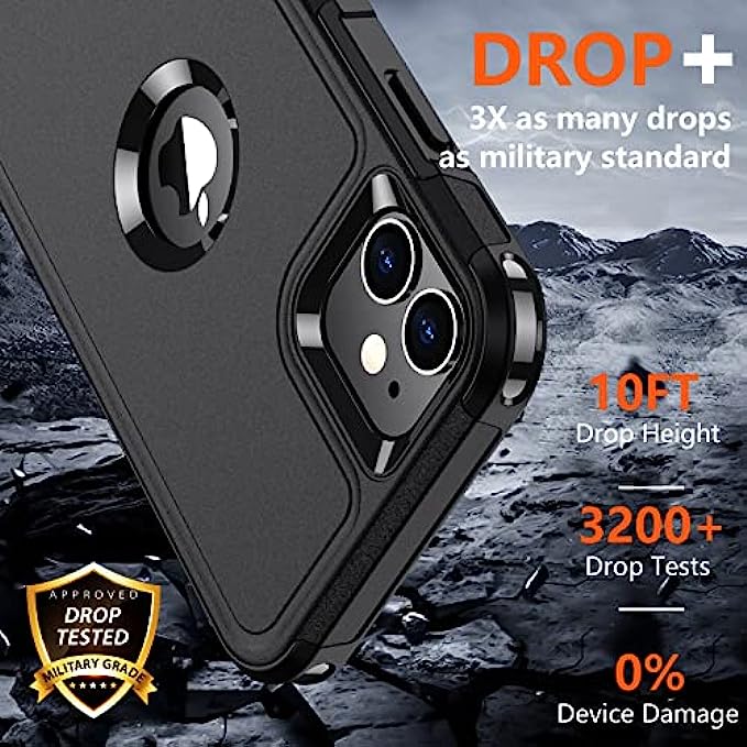 Supfine [5 in 1] iPhone 11 Case, [10 FT Military Dropproof] [2+Tempered Glass Screen, 2+Tempered Camera Lens Protector] Non-Slip Heavy Duty Full-Body Shockproof Phone Case, Black