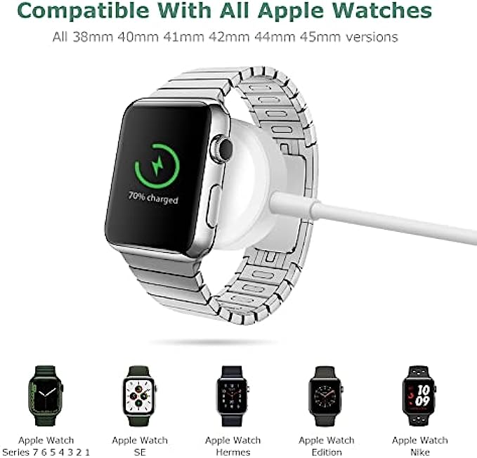 • 【Fast Efficient Charger】This watch charger offers original fast charging speed for your watch series 1/2/3 in 2 hours and 3 hours for series 4/5/6/7. Note: Please take off the watch case and use a 5V/1A adapter or original adapter for better charging.