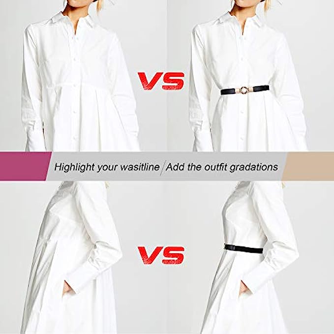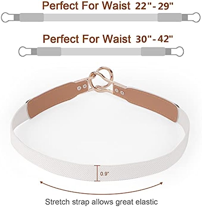 • ✨ Stretchy strap --- Our women skinny waist belt is of great elastic that allows stretching from small size to plus size. The belt leather is soft and comfortable with special pattern, a nice fashion accessory for girls ladies dresses.