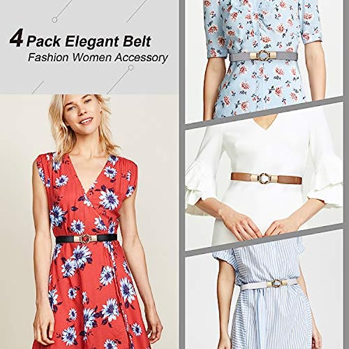 • ✨ Gift belt --- The thin belts are sold in 4 packs that could be shared with other women, it’s really a great set of women belts as gift for your mom,wife, girlfriend, daughter and sisters on birthday ,Valentine's Day, Mother's Day,Thanksgiving Day,Christmas,and anniversary.