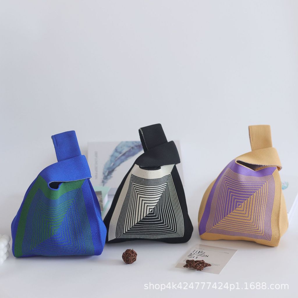 [Local] Knit bag/ Lunch bag/ Candy Color Striped Knit Handbag/ Tote Bag Women Handbags