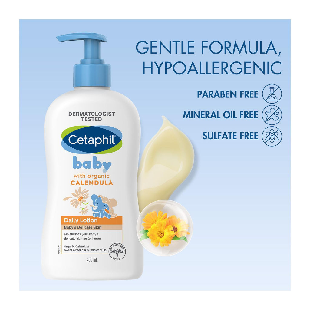 CETAPHIL BABY Wash & Shampoo, Daily Lotion with Organic Calendula / Wash, Daily Lotion with Shea Butter 400ml [Nina]