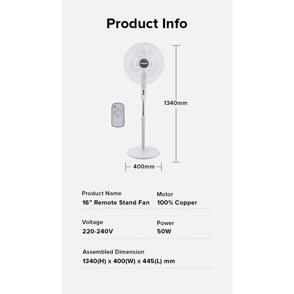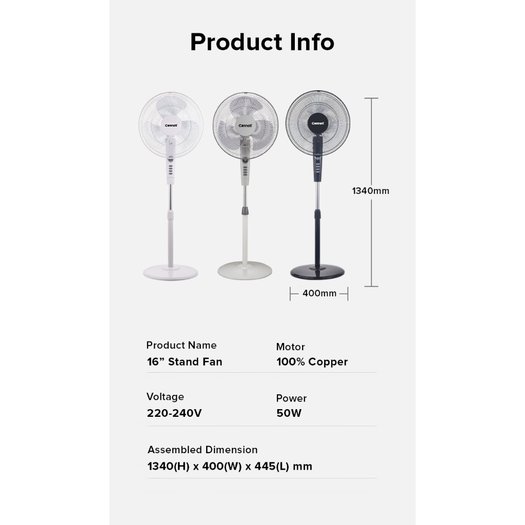 Cornell Stand Fan 16 inch New Improved Models