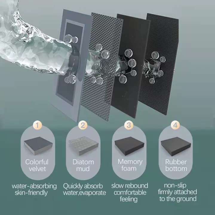 Suitability:Fast Drying surface for wet feets Quality:Good Appearance:Nice prints as per advertised picture Fast delivery. Brand new piece in sealed plastic. Base rubber very good can secure in place. Won’t easily moveable upon step on. Prints are exact as advertised picture. Clear prints. This diatomite mat really fast drying upon touch of water. In touch on wet feet only took few minutes to dry up. Exactly what i wanted. As i don’t like the feeling of stepping on a wet mats. As the purpose of putting a mat, is to dry up my feet. So, i like this mat. Every time i come out from wet bathroom, I’m stepping on a dry mat that does its work to dry up my wet feet.
