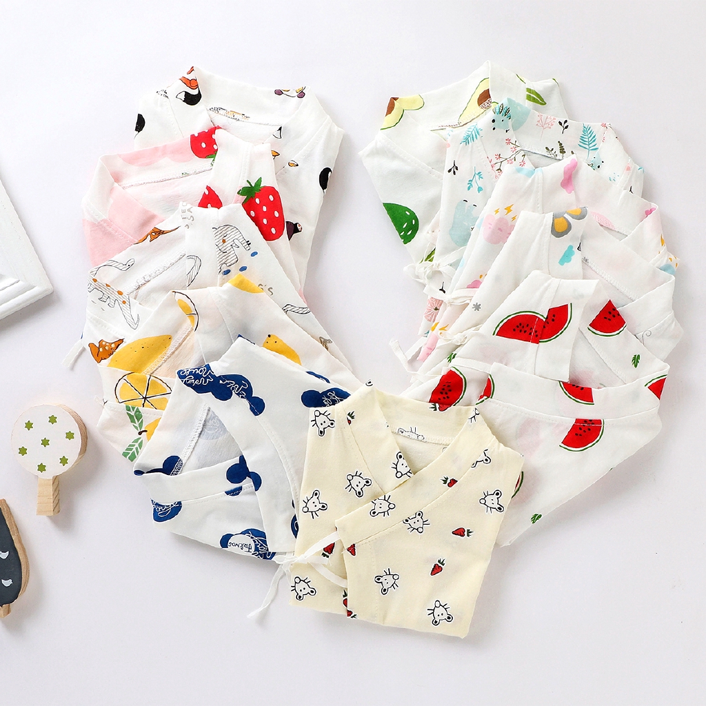 Received the products in good condition. Very fast delivery. It was in a zip lock bag upon received, well packaged. The materials quite soft and thin, suitable for hot weather in Singapore. Very cute designs and colors, love the avocado. All with ties, no button. Suitable for baby. Will consider to buy again in the future!