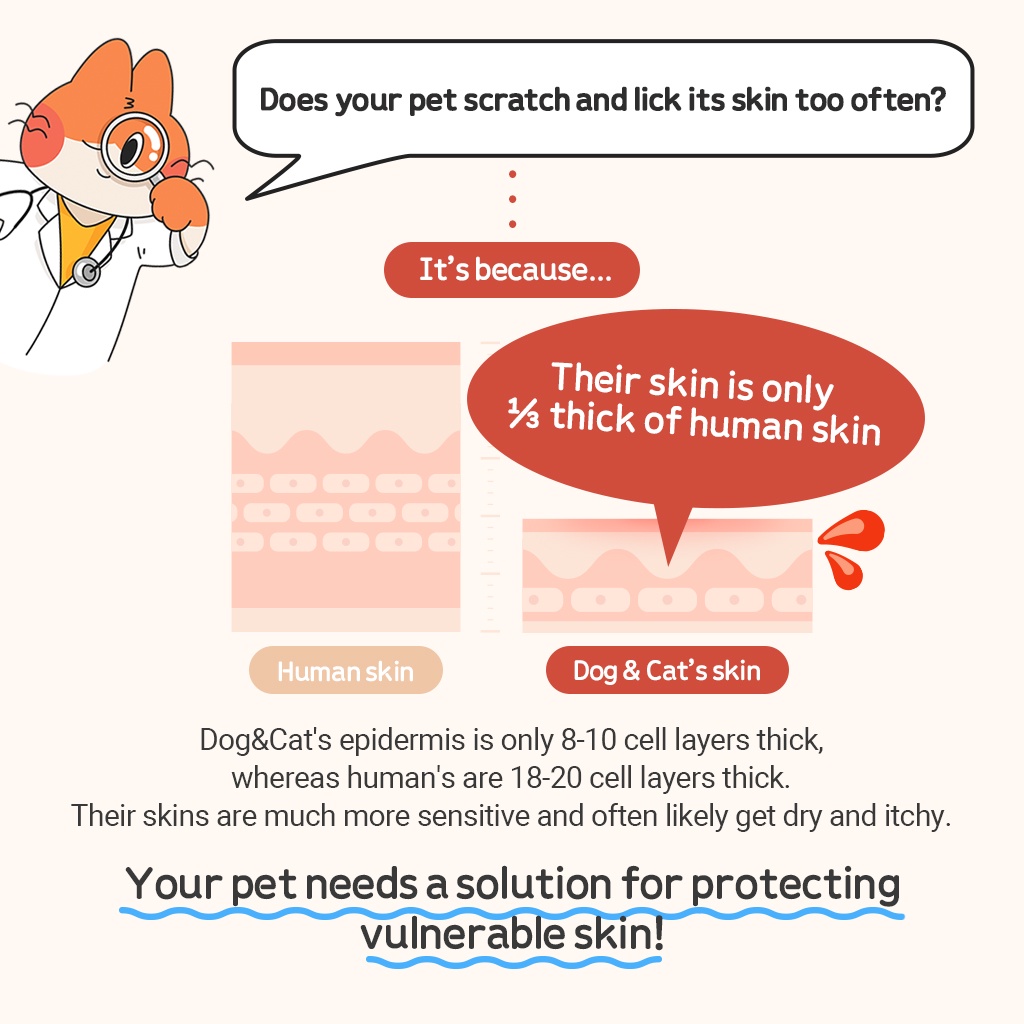 Quality:Doesnt leave stain on the floor. Performance:Applied on my furboy belly and inner thigh area, feels soft and not oily. Suitability:Good My furboy has sensitive skin, especially his inner thigh area. He tends to lick till its sore and red. Condition seems to improve after few application and dont see him lick those area as often.