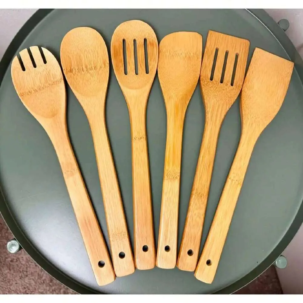 Versatile Kitchenware Set: This 6-piece wooden utensil set includes spoons and spatulas designed for efficient cooking and serving, enhancing your dining experience whether indoors or outdoors. Its practical design supports a variety of meal preparations common in American households.