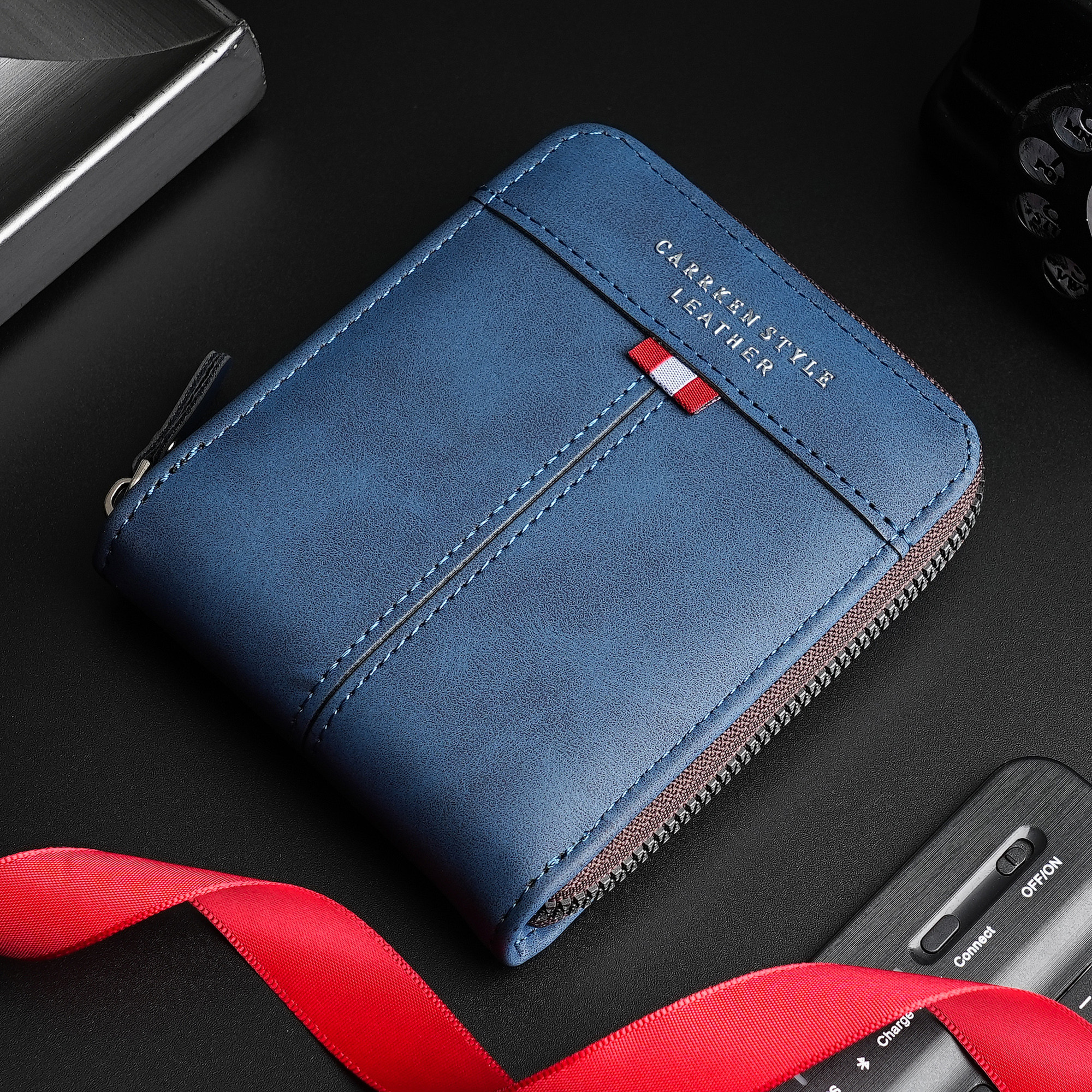 Color: blue Multi-compartment wallet can hold many things and has a coin pocket or small things or drops, the zipper is quite smooth and easy to pull.