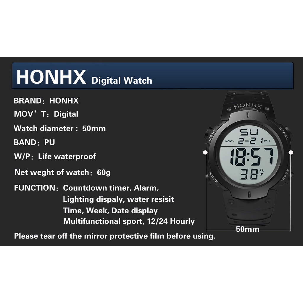 Men Watch Waterproof Silicone Led Digital Stopwatch Date Sport Wrist Watches