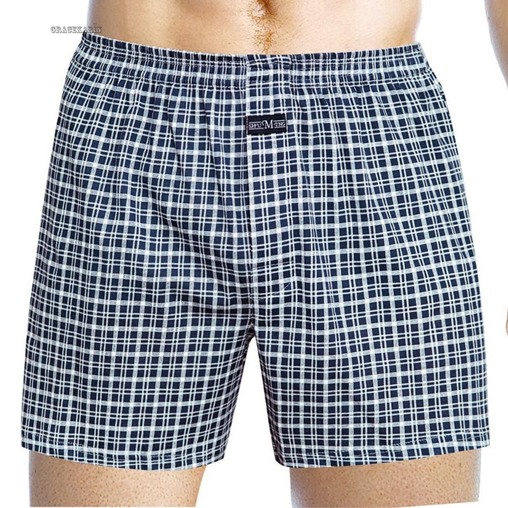 Men's Casual Loose Style Plaid Wide Leg Cotton Boxer Short Home Wear