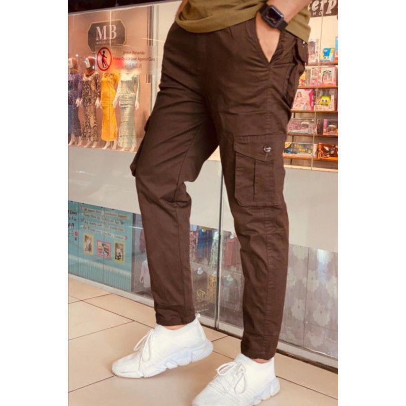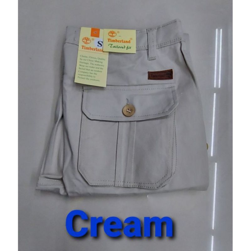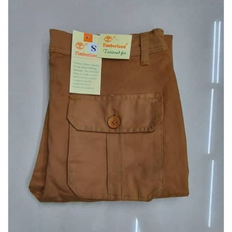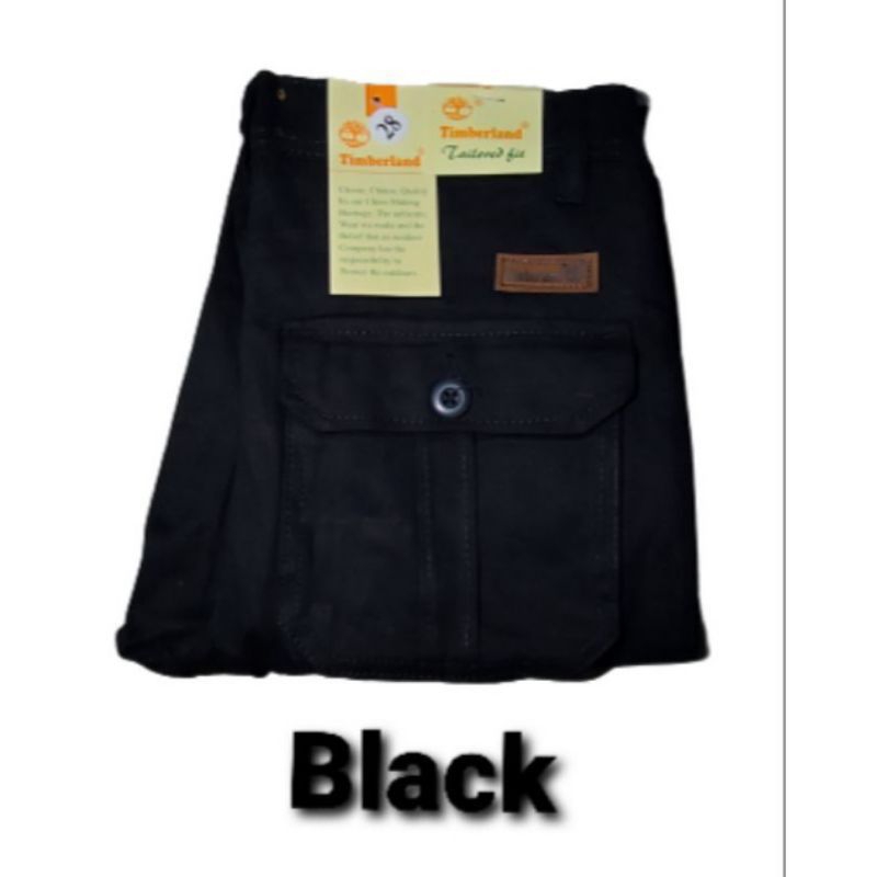 Quality:thick Fabric Material: not sure The outside has arrived, the thick cloth has a pocket on the left and right thighs, size 34 is not working with my husband. The type of cloth is not hot even though it is thick.. bought 2 Kaler black and liquid chocolate.. for my husband to use it for work