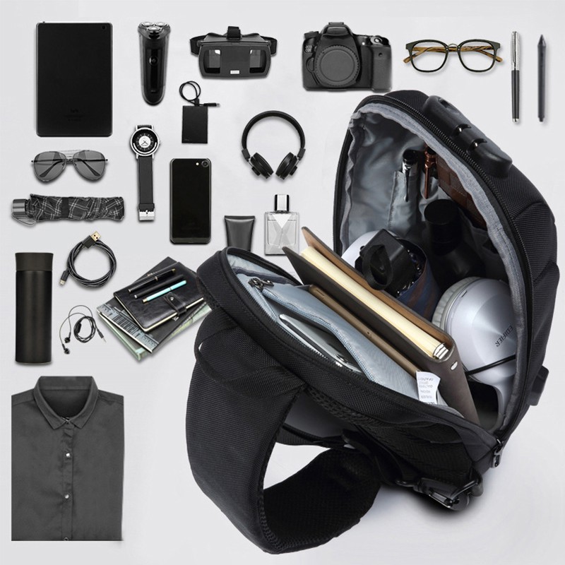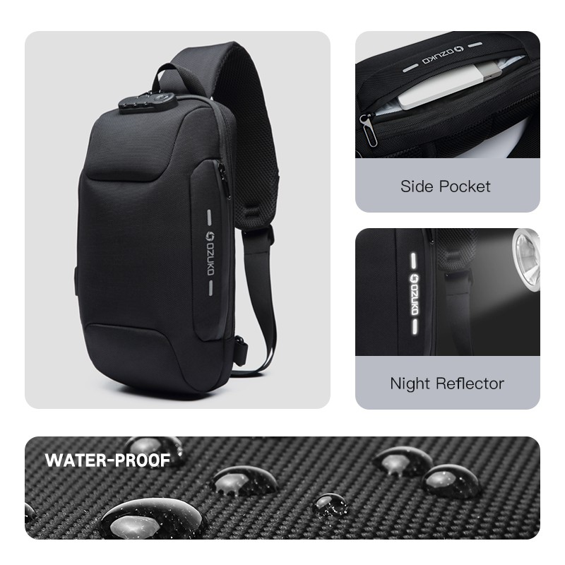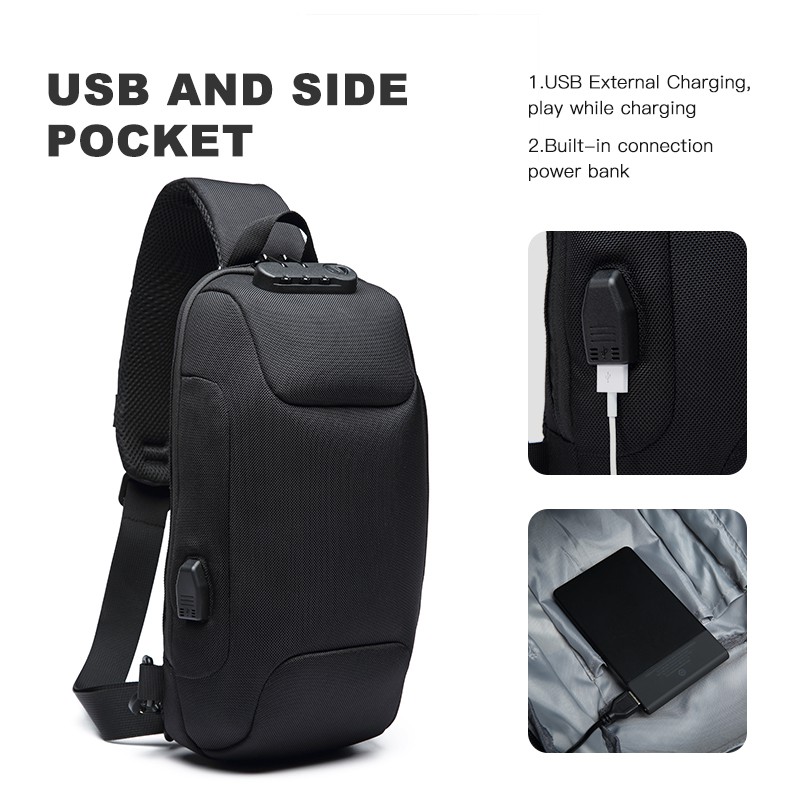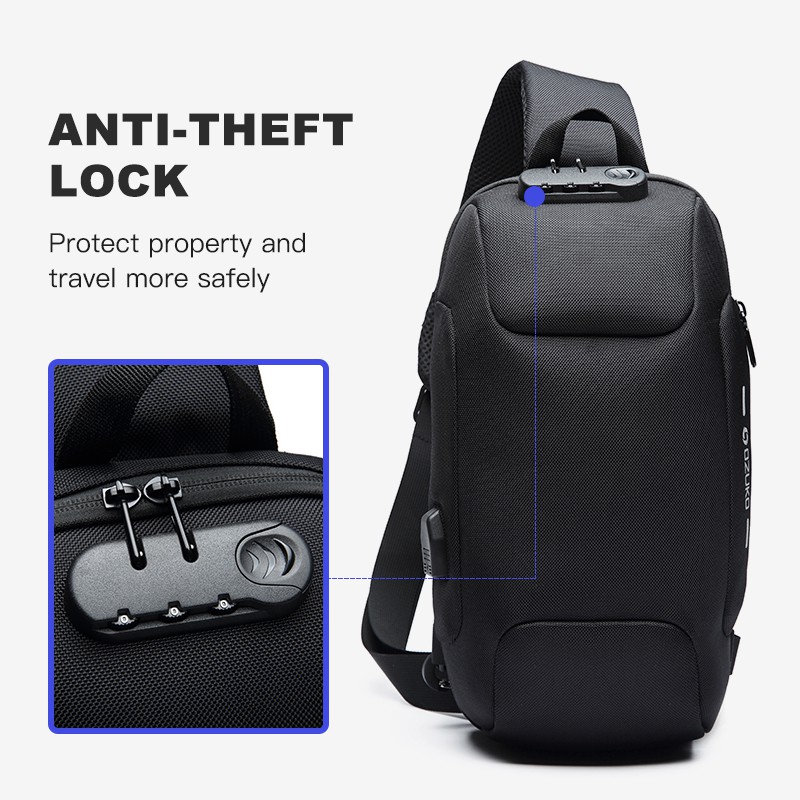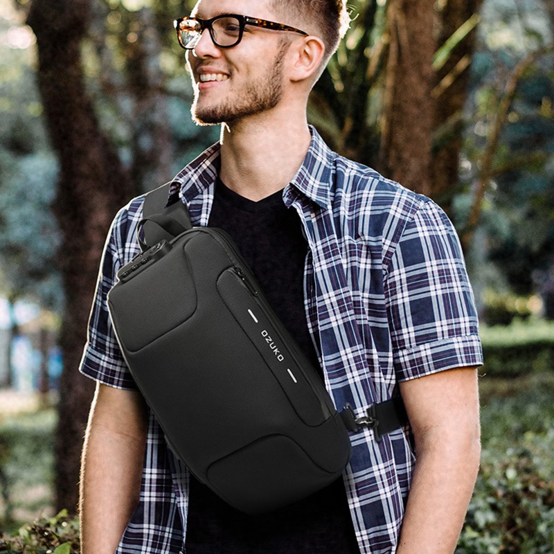 OZUKO Fashion Men Waterproof USB Charging Crossbody Bag Anti Theft Lock Sling Chest Pack