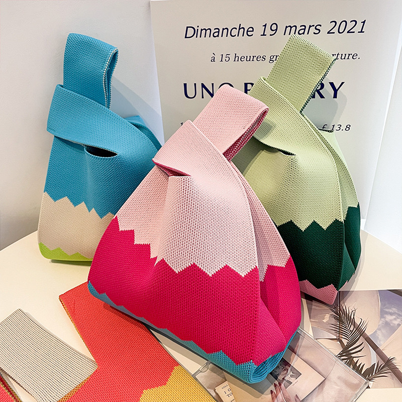 [Local] Knit bag/ Lunch bag/ Candy Color Striped Knit Handbag/ Tote Bag Women Handbags