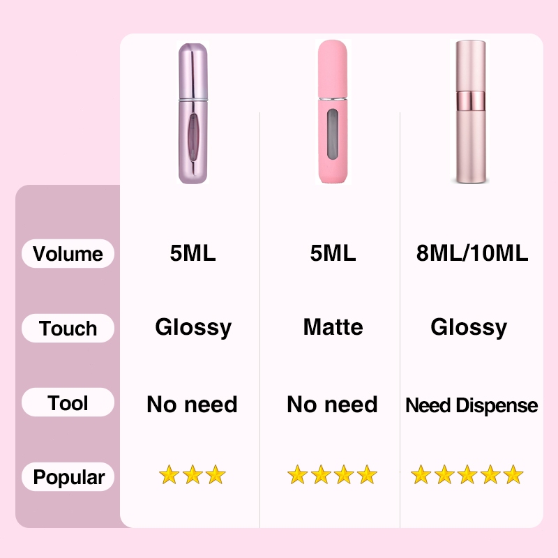 Thank you for the fast delivery of items! Love the candy blue and the matt finish. The black is chic and shiny. Good for travelling, instead of bringing the entire perfume bottle. Would recommend ?